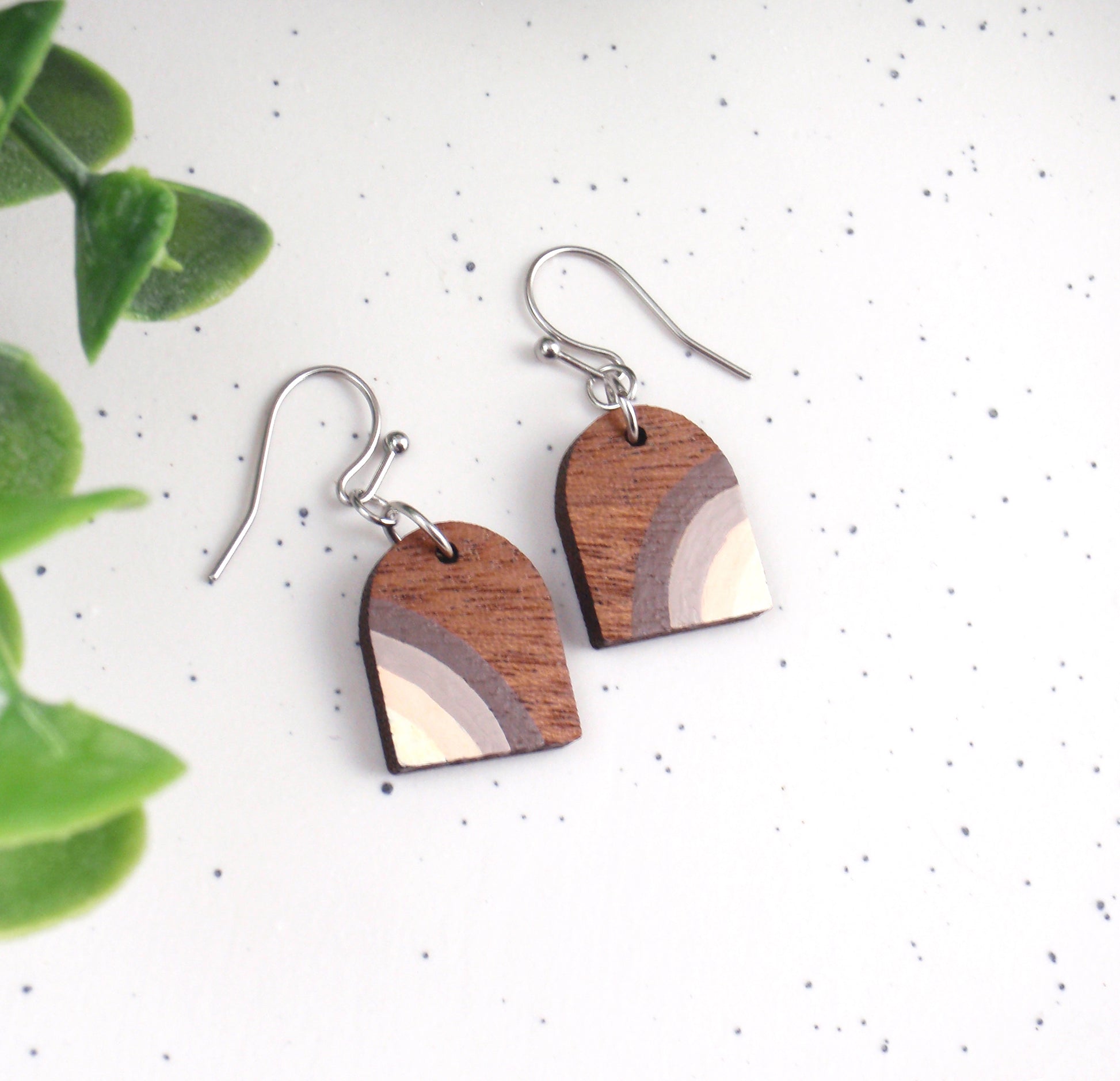 Wood arch earrings handpainted with shades of light and dark brown with your choice of earwires - 925 sterling silver, nickel-free titanium or stainless steel - choose from the drop-down box above.